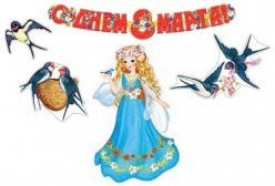 Гирлянда с плакатом А3 "С Днем 8 марта!", 2 м
