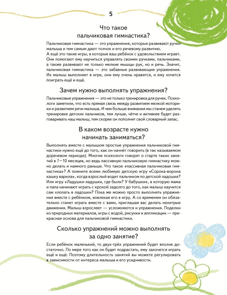 С помощью этой ярко иллюстрированной книги вы сможете играть со своим малышом, развивая его мелкую моторику, а вместе с ней - речь, интеллект и образное мышление. В издании собраны забавные сказки, стишки, пальчиковые игры, а также множество других увлекательных заданий, которые обязательно заинтересуют малыша и вызовут у него массу положительных эмоций. В конце книги есть странички с контурными картинками - на них кроха сможет выкладывать из зернышек симпатичных зверюшек, тренируя свои маленькие пальчики.