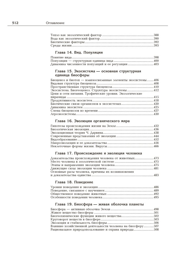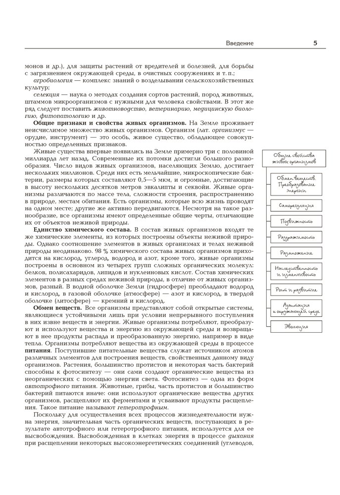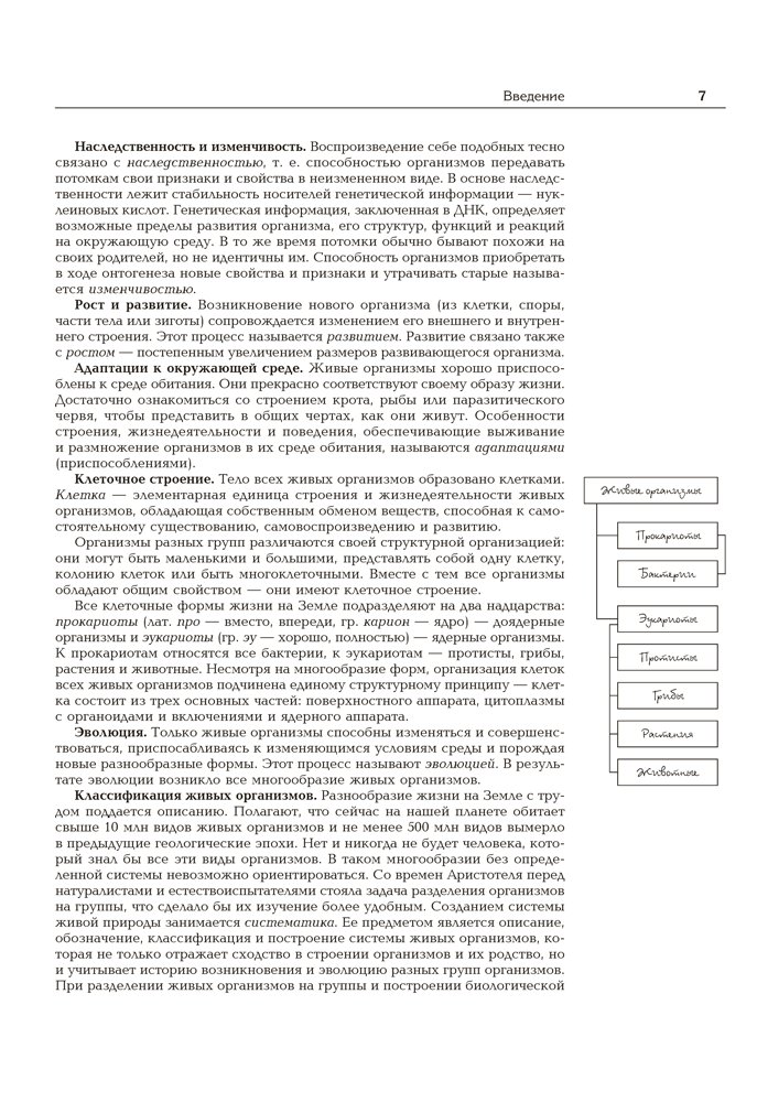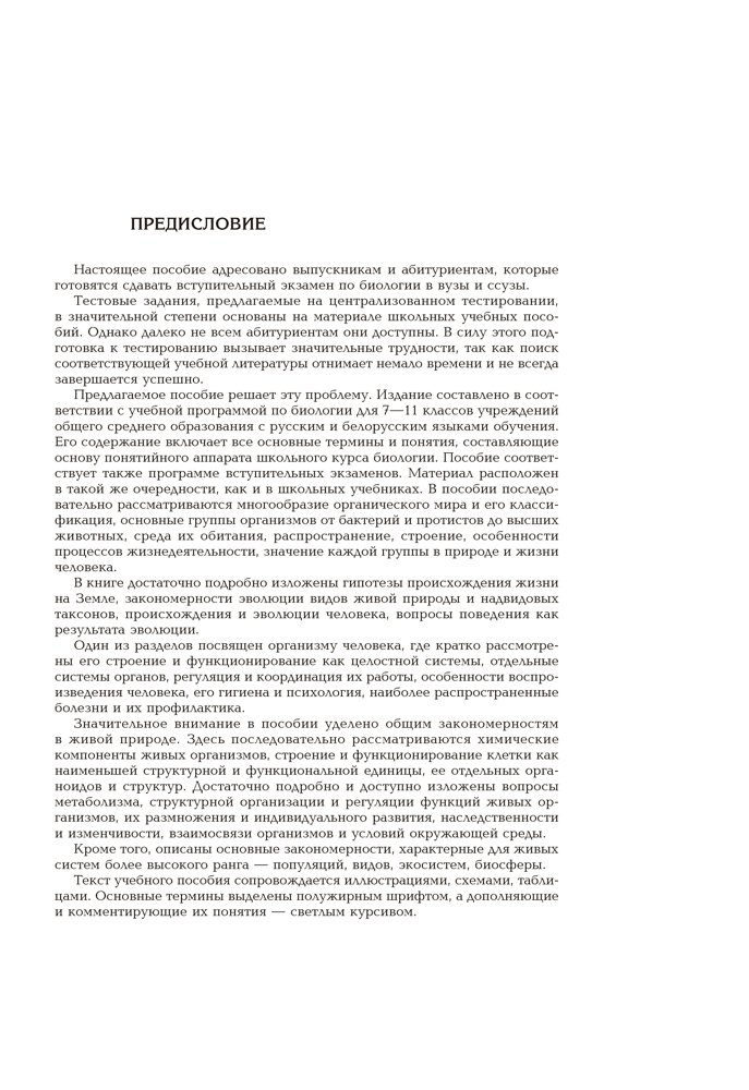 Издание содержит материал, соответствующий школьному курсу биологии. В пособии последовательно раскрываются наиболее общие свойства живых организмов, их многообразие, распространение, среда обитания, классификация, особенности строения и процессов жизнедеятельности, значение в природе и жизни человека. Серьезное внимание уделяется учению о видах и популяциях организмов, экосистемах и биосфере, эволюции живых организмов, селекции и биотехнологии, рассматривается роль человека в биосфере.