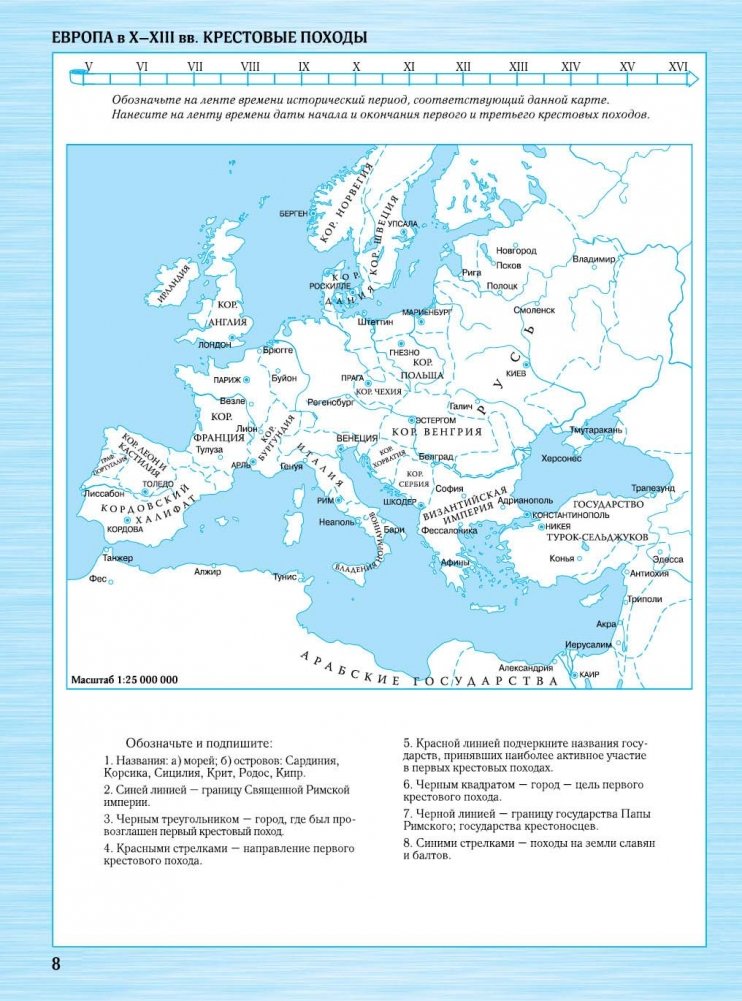 Контурная карта. История Средних веков, V-XV вв. 6 класс. ГРИФ