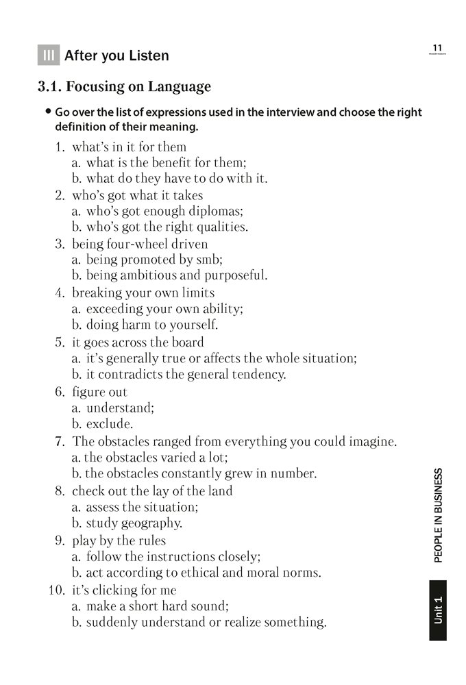 Пособие направлено на развитие навыков смыслового восприятия звучащей английской речи. Оно содержит систему упражнений, позволяющую выработать умения, необходимые для выделения основной информации и распознавания существенных деталей при прослушивании аутентичного текста.