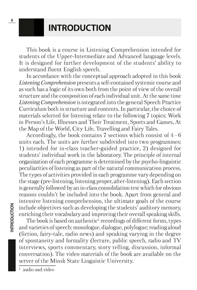 Пособие предназначено для студентов младших курсов университетов и колледжей, изучающих английский язык как основную специальность. Оно также может быть полезно для разных категорий лиц, изучающих английский язык и желающих усовершенствовать навыки аудирования.