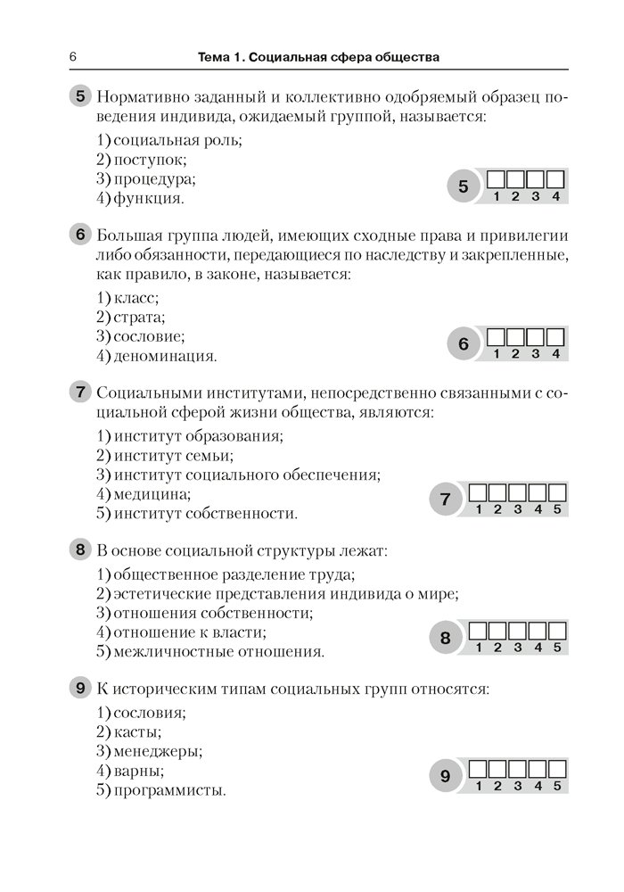 Обществоведение. 10 класс. Тестовые задания