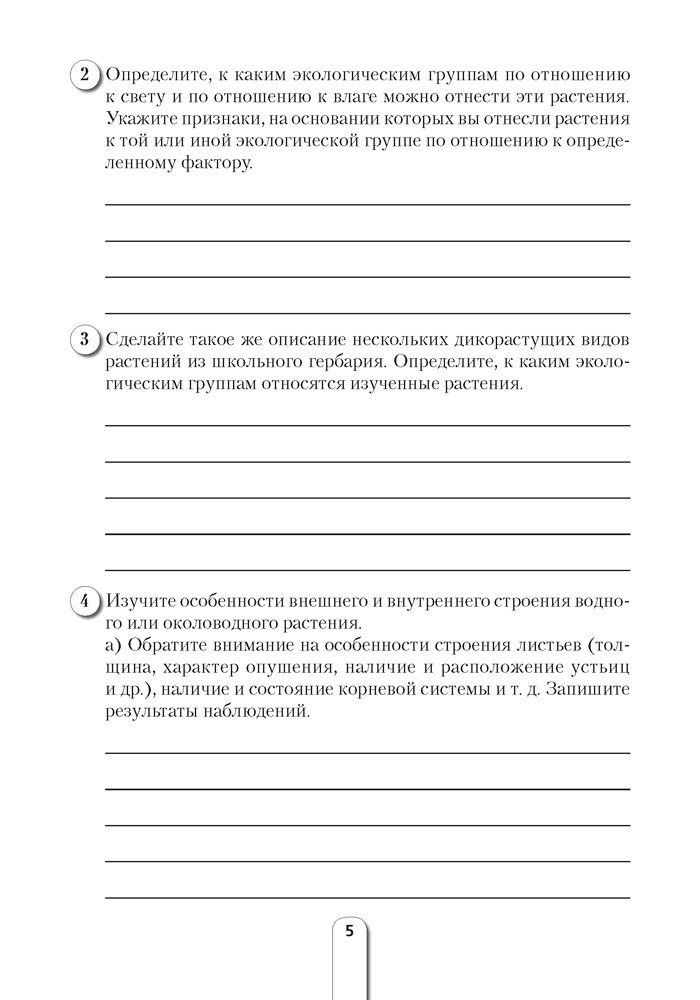 Издание предназначено для более эффективного выполнения учащимися лабораторных и практических работ, лабораторных опытов на уроках и во время учебных экскурсий. Использование тетради позволит не только сэкономить время при выполнении и оформлении той или иной работы, но и сконцентрировать внимание на самых важных ее этапах. Приведенные задания и задачи разного уровня сложности позволят учащимся лучше понять и закрепить материал, а учителю — организовать дифференцированный подход к обучению биологии.