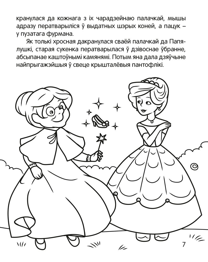 Кніга створана для дзяцей ад пяці гадоў. У ёй сабраны вядомыя творы Шарля Перо, братоў Грым і Вільгельма Гаўфа ў перакладзе на беларускую мову. Дзеці адчуюць сябе сапраўднымі чараўнікамі, калі будуць расфарбоўваць малюнкі і ствараць свой каляровы казачны свет.