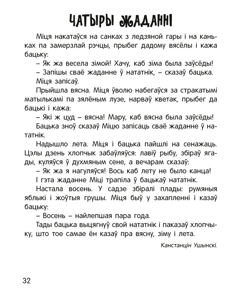 Кніга створана для дзяцей ад пяці гадоў. У ёй сабраны вядомыя творы Антона Чэхава, Льва Талстога, Канстанціна Ушынскага, Барыса Жыткова і Аркадзія Гайдара ў перакладзе на беларускую мову. Дзеці адчуюць сябе сапраўднымі чараўнікамі, калі будуць расфарбоўваць малюнкі і ствараць свой каляровы казачны свет.