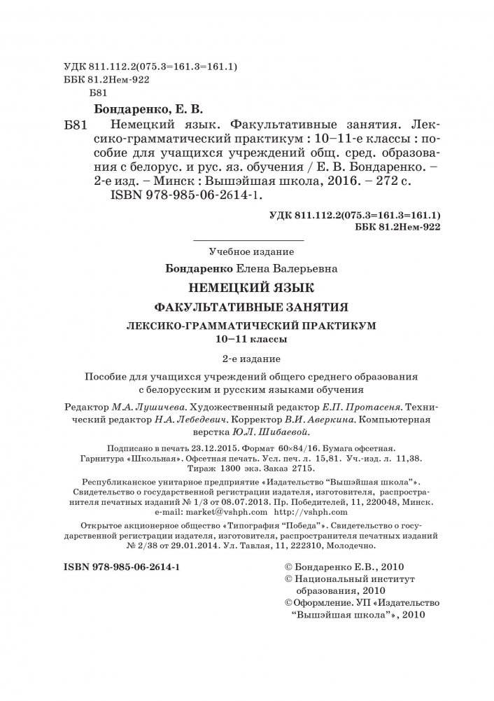 Содержит учебные материалы для факультативных занятий в 10 и 11 классах по немецкому языку. 2-е изд. Для учащихся и учителей общеобразовательных учреждений.