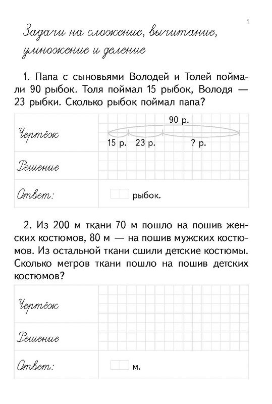 Задания сгруппированы по принципу от простого к сложному, что позволяет не только закрепить навыки, полученные на уроках математики, но и развить их. Первую задачу каждого вида сопровождает чертеж, помогающий понять принцип, лежащий в основе решения. Для последующих задач ребенок должен составить чертеж самостоятельно. Материалы пособия полностью соответствуют учебной программе для III класса.