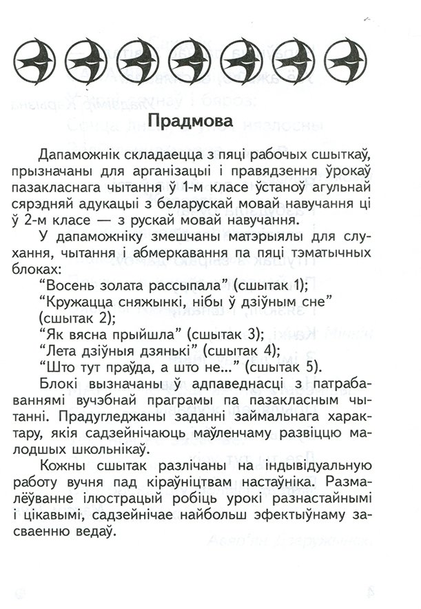 Дапаможнік прызначаны для арганізацыі і правядзення ўрокаў пазакласнага чытання ў 1-м класе ўстаноў агульнай сярэдняй адукацыі з беларускай мовай навучання ці ў 2-м класе - з рускай мовай навучання. Сшытак разлічаны на індывідуальную работу вучня пад кіраўніцтвам настаўніка.