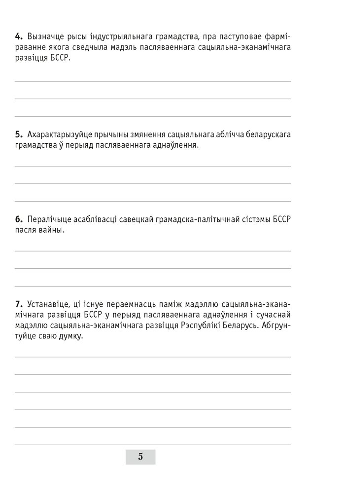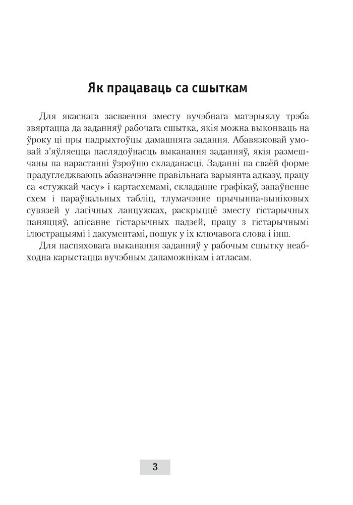 Рабочы сшытак з’яўляецца часткай вучэбна-метадычнага комплексу па гісторыі Беларусі і падрыхтаваны ў адпаведнасці з праграмай і вучэбным дапаможнікам. Выданне змяшчае заданні рознага ўзроўню складанасці, якія накіраваны на засваенне вучнямі тэарэтычных, факталагічных, храналагічных, картаграфічных вучэбных гістарычных ведаў.