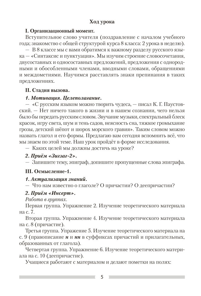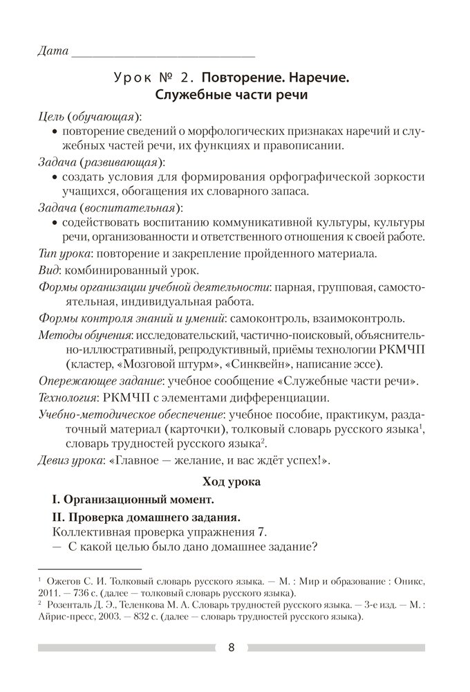 Русский язык. 8 класс. План-конспект уроков