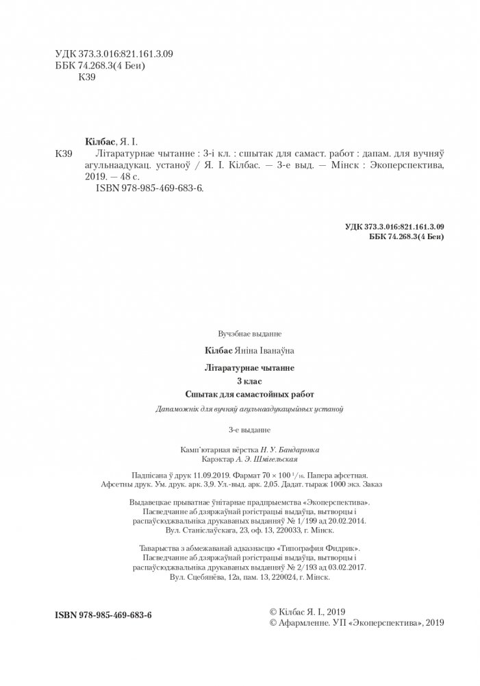 Літаратурнае чытанне. 3 клас. Сшытак для самастойных работ