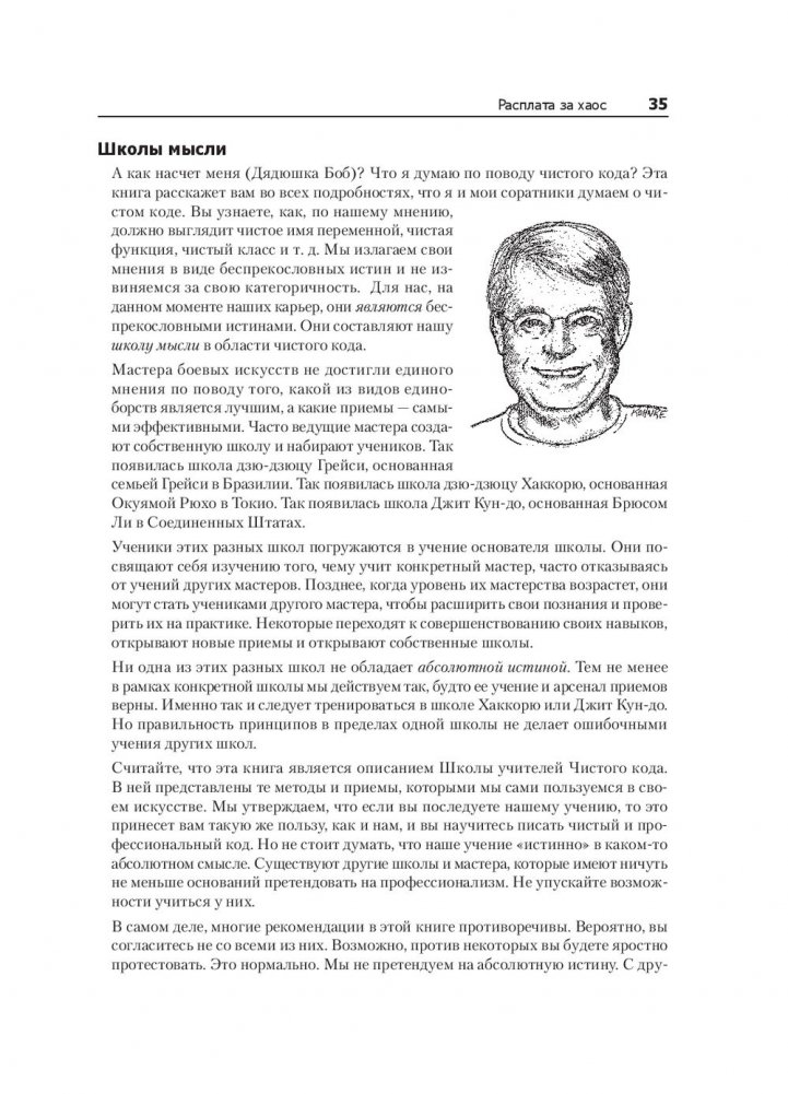 Плохой код может работать, но он будет мешать развитию проекта и компании-разработчика, требуя дополнительные ресурсы на поддержку и «укрощение». Каким же должен быть код? Эта книга полна реальных примеров, позволяющих взглянуть на код с различных направлений: сверху вниз, снизу вверх и даже изнутри. Вы узнаете много нового о коде. Более того, научитесь отличать хороший код от плохого, узнаете, как писать хороший код и как преобразовать плохой код в хороший. Книга состоит из трех частей. Сначала вы познакомитесь с принципами, паттернами и приемами написания чистого кода. Затем приступите к практическим сценариям с нарастающей сложностью — упражнениям по чистке кода или преобразованию проблемного кода в менее проблемный. И только после этого перейдете к самому важному — концентрированному выражению сути этой книги — набору эвристических правил и «запахов кода». Именно эта база знаний описывает путь мышления в процессе чтения, написания и чистки кода.