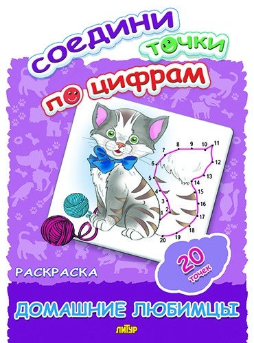 Соедини точки по цифрам. Раскраска. Домашние любимцы. 20 точек