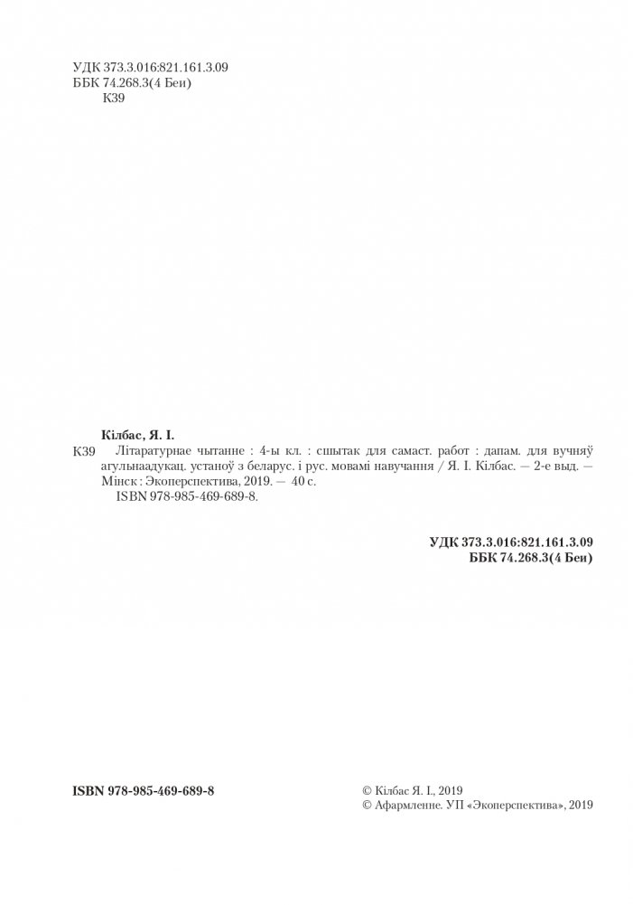 Лiтаратурнае чытанне. 4 клас. Сшытак для самастойных работ