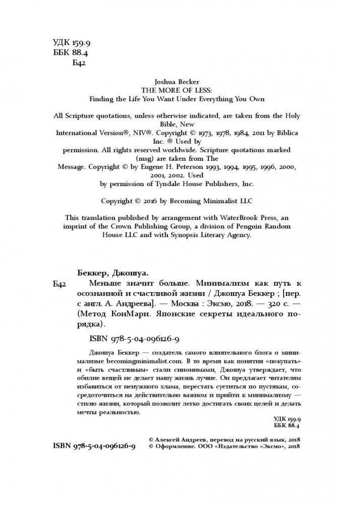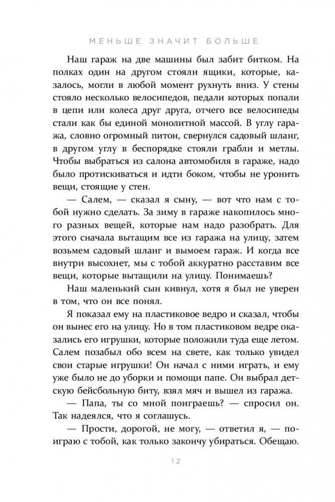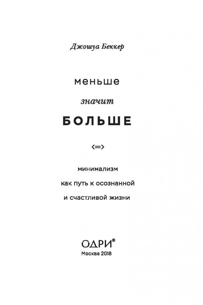 ЧЕМ МЕНЬШЕ ВЕЩЕЙ МЫ ИМЕЕМ, ТЕМ СЧАСТЛИВЕЕ СТАНОВИМСЯ. Мы мечтаем о дорогой машине, жаждем дизайнерской одежды, хотим много тратить и жить красиво. Но погоня за новыми вещами приводит лишь к забитым шкафам, захламленным квартирам и постоянно растущему желанию обладать большим. Так почему бы не избавиться от лишнего в пользу осознанной и счастливой жизни? Минимализм поможет вам: • освободить пространство и найти в нем себя, • научиться противостоять уловкам рекламы и накопить денег на мечту, • обрести свободу и возможность жить так, как вы всегда хотели, • перестать суетиться по пустякам, • наслаждаться роскошью простоты.