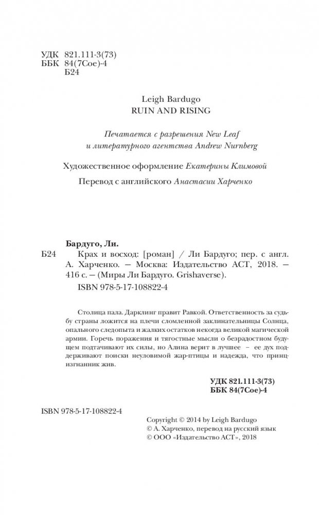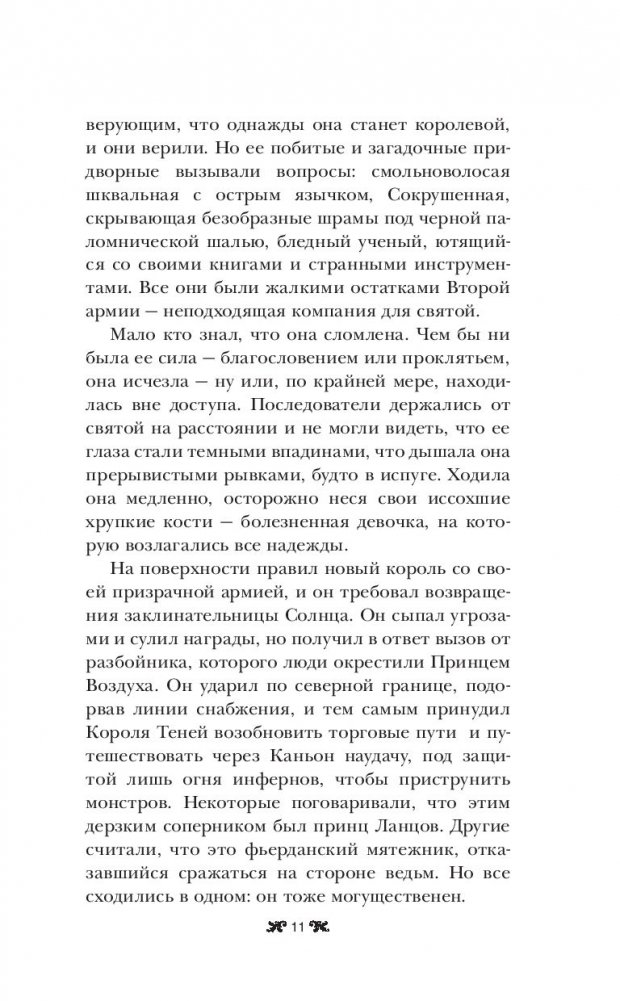 Столица пала. Дарклинг правит Равкой. Ответственность за судьбу страны ложится на плечи сломленной заклинательницы Солнца, опального следопыта и жалких остатков некогда великой магической армии. Горечь поражения и тягостные мысли о безрадостном будущем подтачивают их силы, но Алина верит в лучшее – ее дух поддерживают поиски неуловимой жар-птицы и надежда, что принц-изгнанник жив.