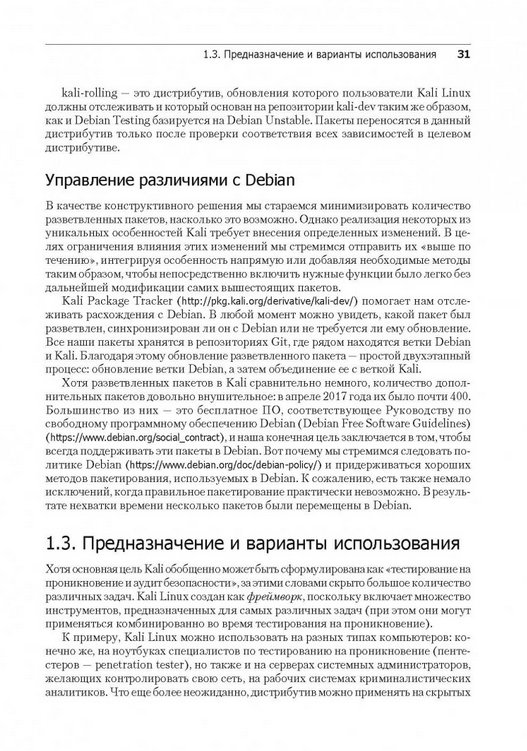 Авторы шаг за шагом познакомят вас с основами и возможностями Kali Linux. В книге предложен краткий курс работы с командной строкой Linux и ее концепциями, описаны типичные сценарии установки Kali Linux. Прочитав эту книгу, вы научитесь конфигурировать, отлаживать и защищать Kali Linux, а также работать с мощным менеджером пакетов дистрибутива Debian. Научитесь правильно устанавливать Kali Linux в любых окружениях, в том числе, в крупных корпоративных сетях. Наконец, вам предстоит познакомиться и со сложными темами: компиляция ядра, создание собственных образов ISO, промышленное шифрование и профессиональная защита конфиденциальной информации.