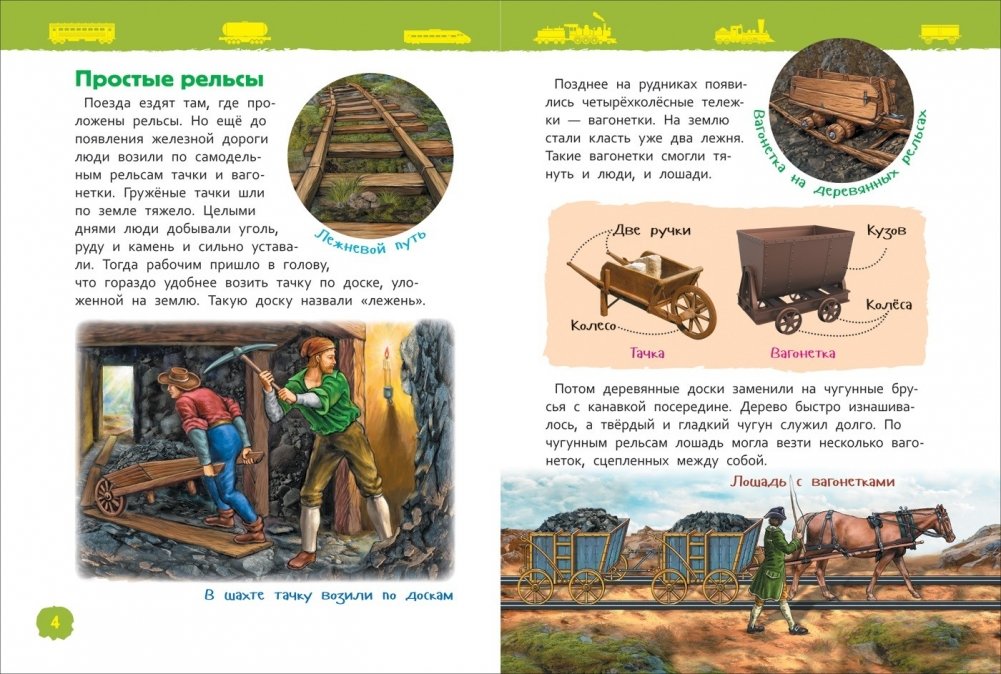 Книга серии «Энциклопедия для детского сада» познакомит ребенка со старинными и современными поездами. Он узнает, для чего придуманы поезда, какими они бывают, чем паровоз отличается от электровоза, а фуникулер — от вагона канатной дороги.