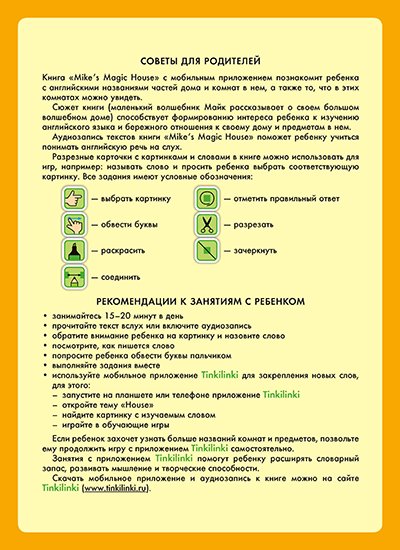 В книге «Mike’s Magic House» ребенок попадает в дом к волшебнику Майку и его родителям, узнает, как называются по-английски комнаты и предметы в доме и почему этот дом — волшебный.