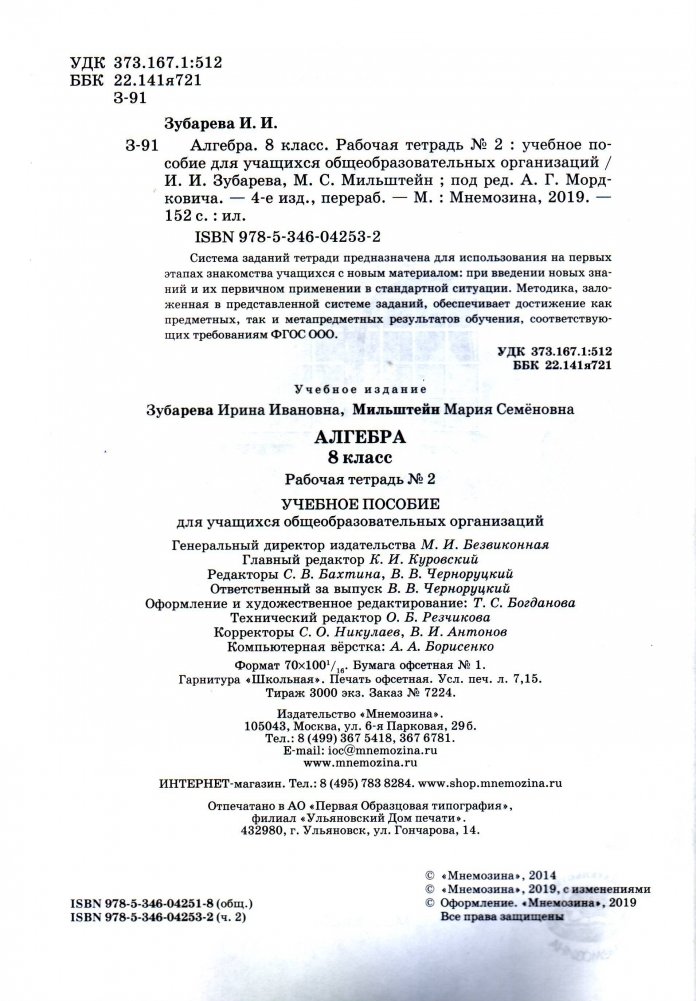 Алгебра В 2 частях. Рабочая тетрадь №2. К учебнику А.Г. Мордкович. ФГОС