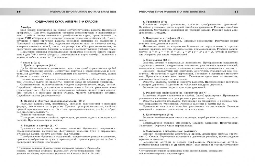 Математика. Сборник примерных рабочих программ. Предметные линии учебников "Сферы". Математика. 5-6 классы. Алгебра. 7-9 класс. ФГОС