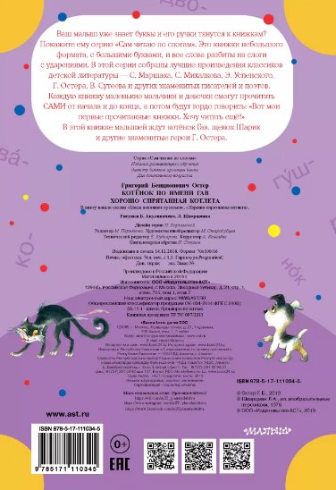 Ваш малыш уже знает буквы и его ручки тянутся к книжкам? Покажите ему серию «Сам читаю по слогам». Это книжки небольшого формата, с большими буквами, и все слова разбиты на слоги с ударениями. В этой серии собраны лучшие произведения классиков детской литературы – С.Я. Маршака, С.В. Михалкова, Э.Н. Успенского, Г.Б. Остера, В.Г. Сутеева и других знаменитых писателей и поэтов. Каждую книжку маленькие мальчики и девочки смогут прочитать САМИ от начала и до конца, а потом будут гордо говорить: «Вот мои первые прочитанные книжки. Хочу читать ещё!» В этой книжке малышей ждут котёнок Гав, щенок Шарик и другие знаменитые герои Г.Б. Остера. Для дошкольного возраста.