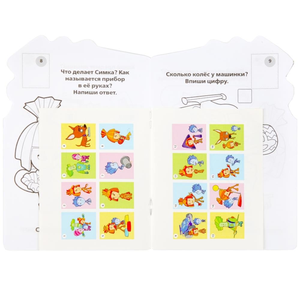 Развивающая раскраска «Фиксики» - новое предложение от ТМ «УМка», специально для поклонников знаменитого мультика. Книга изготовлена из высококачественной белой бумаги с обложкой из плотного картона и вырубкой в виде силуэта Файера – одного из фиксиков. Она содержит раскраски и развивающие задания, дополнена вкладышем с 16 цветными наклейками. Дети раскрашивают своих любимых мультипликационных героев, выполняют увлекательные задания и наклеивают стикеры. Занятия по книге развивают внимание, память, фантазию, воображение, координацию движений, усидчивость и мелкую моторику рук. Готовят руку к письму, расширяют кругозор.