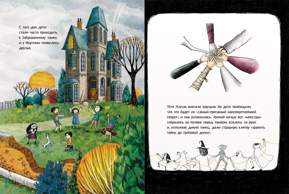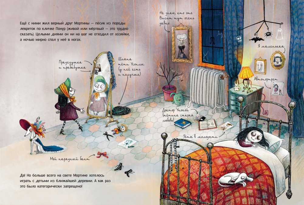 Мортина – самая обычная девочка, только она зомби! Живет Мортина в Заброшенном замке вместе со своей тетей Усоплой и песиком Понуром. Замок огромный, можно играть, где хочешь. Одна беда – у Мортины совсем нет друзей. А общаться с детьми из ближайшей деревни тетя строго-настрого запрещает. Однако Мортина не унывает. Близится Хеллоуин, и у нее как раз появилась блестящая идея. Добрая и смешная итальянская сказка, придуманная и нарисованная Барбарой Кантини и уже ставшая популярной в Европе, впервые на русском языке.