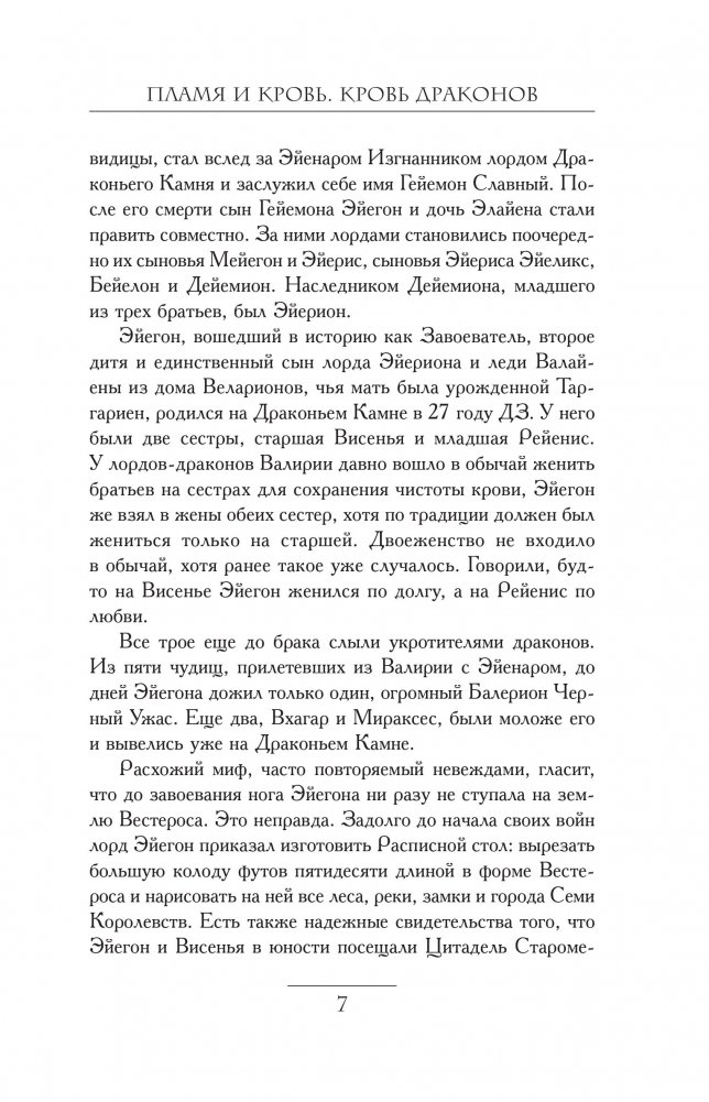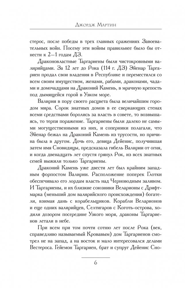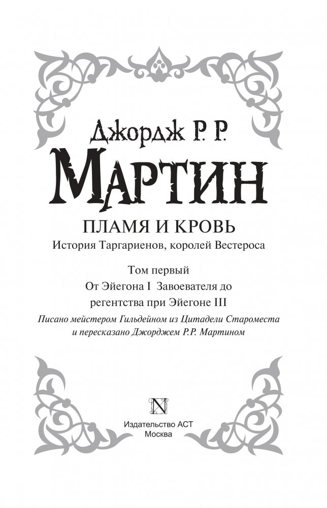 Тирион Ланнистер еще не стал заложником жестокого рока, Бран Старк еще не сделался калекой, а голова его отца Неда Старка еще не скатилась с эшафота. Ни один человек в Королевствах не смеет даже предположить, что Дейенерис Таргариен когда-нибудь назовут Матерью Драконов. Вестерос не привел к покорности соседние государства, и Железный Трон, который, согласно поговорке, ковался в крови и пламени, далеко еще не насытился. Древняя, как сам мир, история сходит со страниц ветхих манускриптов, и только мы, септоны, можем отделить правдивые события от жалких басен, и истину от клеветнических наветов. Присядьте же поближе к огню, добрые слушатели, и вы узнаете: – как Королевская Гавань стала столицей столиц, – как свершались славные подвиги, неподвластные воображению, – и как братья и сестры, отцы и матери теряли разум в кровавой борьбе за власть, – как драконье племя постепенно уступало место драконам в человеческом обличье, – а также и многие другие были и старины – смешные и невыразимо ужасные, бряцающие железом доспехов и играющие на песельных дудках, наполняющее наши сердца гордостью и печалью…