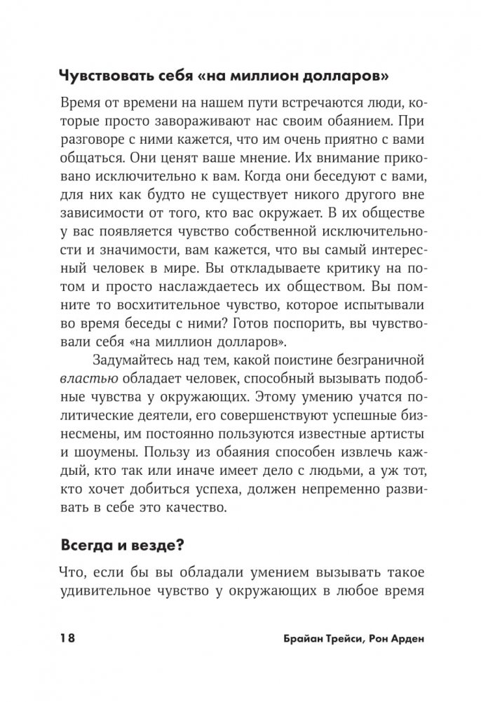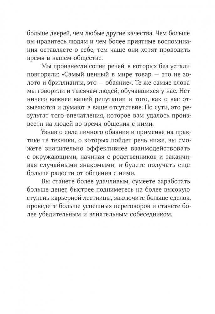 Успех и в бизнесе, и в личной жизни напрямую зависит от умения общаться с окружающими. Секрет успеха заключается в использовании надежных методов взаимодействия с людьми. Из этой книги вы узнаете, как исключительно обаятельные люди добиваются успеха в общении с покупателями и клиентами, а также достигают глубокого взаимопонимания в отношениях с друзьями и близкими. Кроме того, авторы рассказывают, как нужно вести себя, чтобы неизменно пользоваться успехом у противоположного пола. Обаяние и умение быть приятным собеседником откроют перед вами поистине безграничные возможности. Книга адресована широкому кругу читателей.