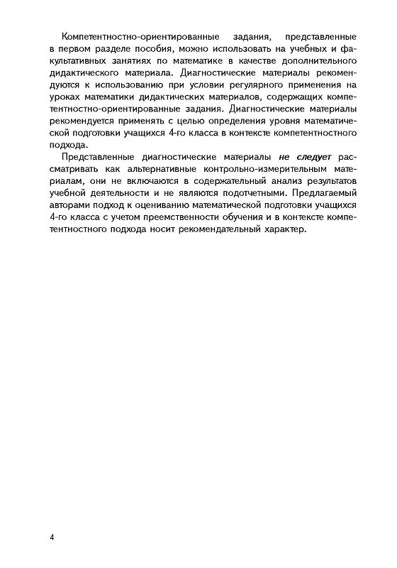 Дидактические и диагностические материалы — это дополнительный материал к действующему УМК по математике для 4-го класса, который учитель может использовать на уроках, факультативных, стимулирующих занятиях, во внеучебной деятельности при подготовке к интеллектуальным конкурсам и олимпиадам.