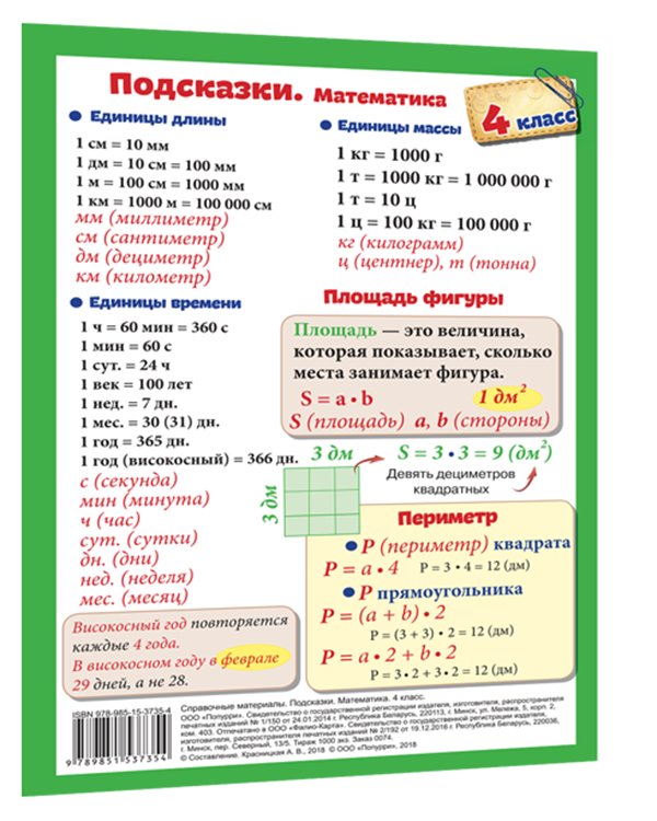 Эта серия учебных материалов представляет собой двухсторонние ламинированные карточки формата А4, А5 и А6, на которых в виде понятных таблиц приводятся компактно систематизированные сведения по предметам, что способствует их оптимальному усвоению и запоминанию. Ребенок сможет в любой момент освежить в памяти нужный материал, а благодаря ламинированию таблички будет удобно всегда носить с собой (даже просто в рюкзаке) и это никак не отразится на их качестве — они не испортятся и не помнутся.