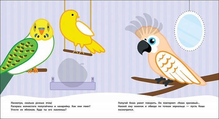 Серия ярких книг с многоразовыми наклейками, специально разработанная для самых маленьких. На каждом развороте - увлекательные задания (дорисовать картинку или дополнить ее наклейками, ответить на вопросы), симпатичные раскраски с толстым контуром. Мелованная бумага.