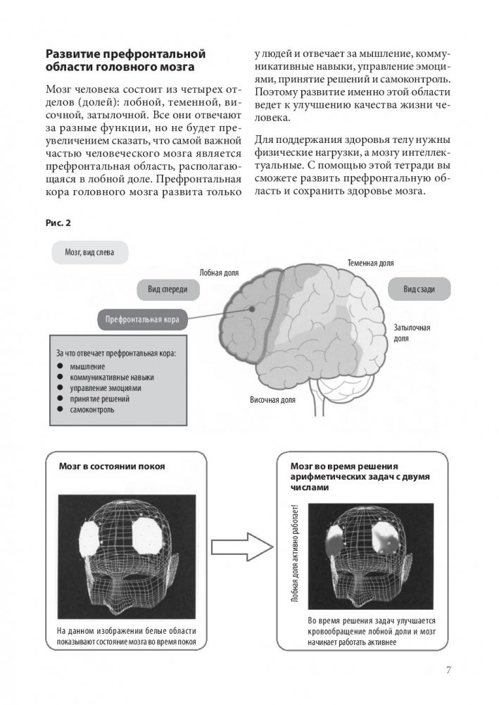 Мозг как и мышцы слабеет без нагрузки. Поэтому так важно каждый день заставлять его работать. Префронтальная кора отличает людей от животных, это самая важная часть человеческого мозга. Ее развитие неразрывно связано с улучшением умственной деятельности и в конечном счете продолжительности жизни. Активность префронтальной коры стимулируют письмо, чтение вслух и счет. В этой тетради представлены различные математические примеры, основанные на обычных арифметических действиях. Они стимулируют вашу мозговую деятельность. Эффективность упражнений, приведенных в этой тетради, была подтверждена опытным путем.