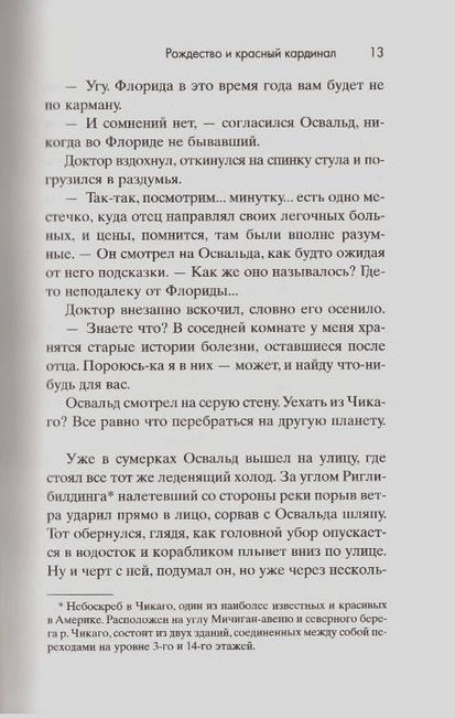 Напуганный врачебным диагнозом Освальд Т. Кэмпбелл бежит из холодного сырого Чикаго на юг в гостеприимный городок Затерянный Ручей, где собирается встретить свое последнее Рождество. Ничего хорошего от захолустья он не ожидает, но реальность оказывается совсем не такой, какой он себе ее воображал. Жизнь в Затерянном Ручье хоть и размеренная, но весьма необычная и даже странная. И жители городка тоже весьма необычны. Почтальон доставляет корреспонденцию на лодке. В единственном магазинчике хозяйничает маленькая красная птичка по имени Джек. Дамы городка тайно творят добро, объединившись в эзотерическое общество под названием "Крупные горошинки ". А сам Освальд оказывается вдруг главной фигурой местной светской жизни. Вместе с приближением Рождества начинают происходить удивительные события, которые изменят не только жизнь Освальда, но и всех обитателей Затерянного Ручья. Роман Фэнни Флэгг – настоящая рождественская сказка, странная, притягательная, теплая и полная самого обычного волшебства, которое под силу многим, стоит только очень захотеть. Книга для всех, кто стосковался по доброму слову и красивой истории.