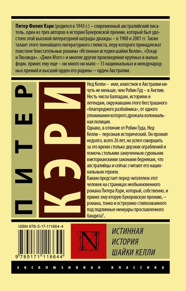 Нед Келли – имя, известное в Австралии ничуть не меньше, чем Робин Гуд – в Англии. Несть числа балладам, историям и легендам, окружавшим этого бесстрашного «благородного разбойника», от одного упоминания которого дрожала колониальная полиция. Однако, в отличие от Робина Гуда, Нед Келли – персонаж исторический. Он прожил недолго, всего 26 лет, но успел совершить за это время столько дерзких ограблений и помочь стольким замученным суровым викторианскими законами беднякам, что австралийцы и сейчас считают его национальным героем. Каким предстает перед читателем этот человек на страницах необыкновенного романа Питера Кэри, который, собственно, и принес ему вторую Букеровскую премию, – романа, тонко и остроумно стилизованного под подлинные мемуары прославленного бандита?