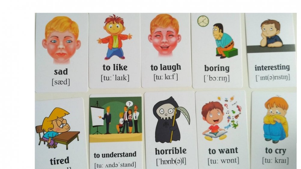 Учим английские слова. Эмоции и чувства. Развивающие карточки