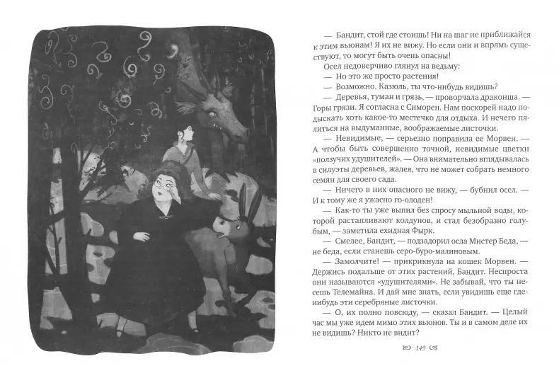 Вот уже год в Заколдованном Лесу и округе царят мир и спокойствие. О колдунах вспоминают все реже, а зря! Они стали умнее, ненамного, но все-таки, и теперь собрались окончательно завладеть магией волшебного Леса. Кошки ведьмы Морвен первыми заподозрили неладное. Шутка ли — двухметровый кролик в саду! Новые следы пребывания колдунов продолжают появляться то тут, то там. Вся надежда — на короля. Менданбара, вот только его волшебный меч, кажется, исчез. Королева Симорен берет дело в свои руки. Ей предстоит встретиться с "ползучими удушителями", огненными ведунами и вездесущими блюстителями магической морали. Но вместе с Морвен и кошками, королем драконов Казюль и чародеем-исследователем Телемайном она найдет способ остановить злодеев и навести порядок в королевстве. Или на этот раз все будет не так просто?