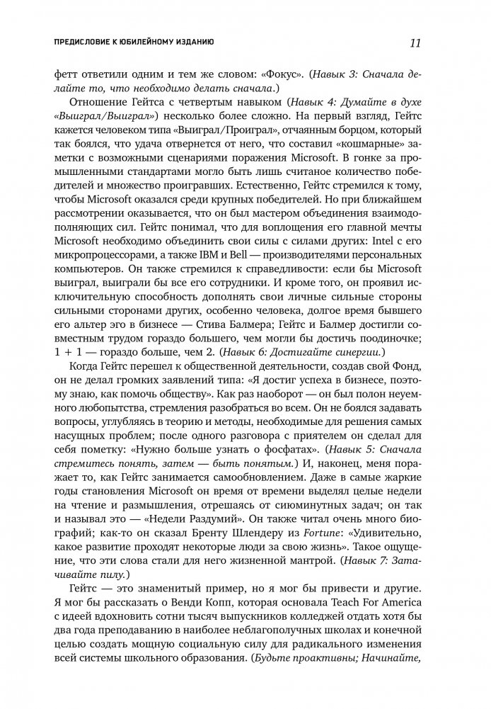 Эта книга — мировой супербестселлер, работа № 1 по теме личностного роста. Она оказала большое влияние на жизни миллионов людей во всем мире, включая Билла Клинтона, Ларри Кинга и Стивена Форбса. Половина крупнейших мировых корпораций, входящих в рейтинг Fortune 500, посчитали своим долгом ознакомить своих сотрудников с философией эффективности, изложенной в «Семи навыках».