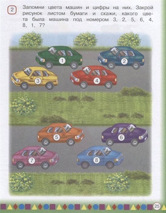 Основная цель пособия — развить память и математические способности ребёнка. При выполнении заданий по математике упор делается на тренировку памяти: зрительной, слуховой, образной и словесной. Ребёнок запоминает геометрические фигуры и числа, учится считать и писать цифры.