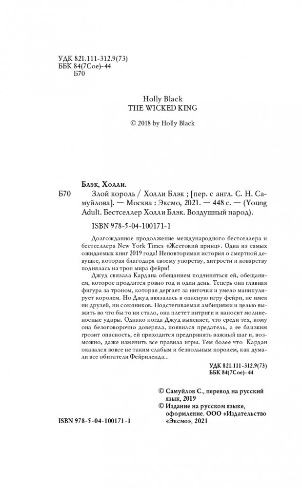 Джуд связала Кардана обещанием подчиняться ей, обещанием, которое продлится ровно год и один день. Теперь она главная фигура за троном, которая дергает за ниточки и умело манипулирует королем. Но Джуд ввязалась в опасную игру фейри, не имея ни друзей, ни союзников. Подстегиваемая амбициями и целью выжить во что бы то ни стало, она плетет интриги и наносит молниеносные удары. Однако когда Джуд выясняет, что среди тех, кому она безоговорочно доверяла, появился предатель, а ее близким грозит опасность, ей приходится предпринять важный шаг и возможно даже изменить все правила игры. Тем более, что Кардан оказался вовсе не таким слабым и безвольным королем, как думали все обитатели Фейриленда...