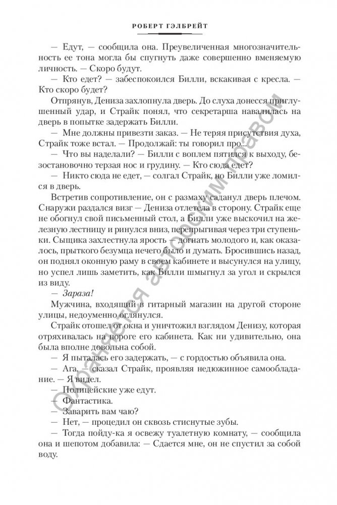 У Билли явные проблемы с умственным здоровьем, но он уверен, что в детстве видел убийство ребенка, - и давняя тревога наконец приводит его в офис частного детектива Корморана Страйка, вновь прославившегося после поимки Шеклуэллского Потрошителя. Договорить Билли не успевает, спугнутый перспективой скорого приезда полиции, но его история не выходит у Страйка из головы. Попытки докопаться до истины поведут Страйка и его помощницу Робин Эллакотт (ставшую полноценным партнером в их агентстве) сложным извилистым путем: от окраинных клубов, где собираются противники Лондонской олимпиады, - в пропитанные интригами коридоры власти, от парламентских кабинетов - к окутанному тайной имению в глубине Оксфордшира... Но еще неизвестно, что будет Корморану и Робин сложнее - разгадать эту головоломную загадку или разобраться в своих чувствах.