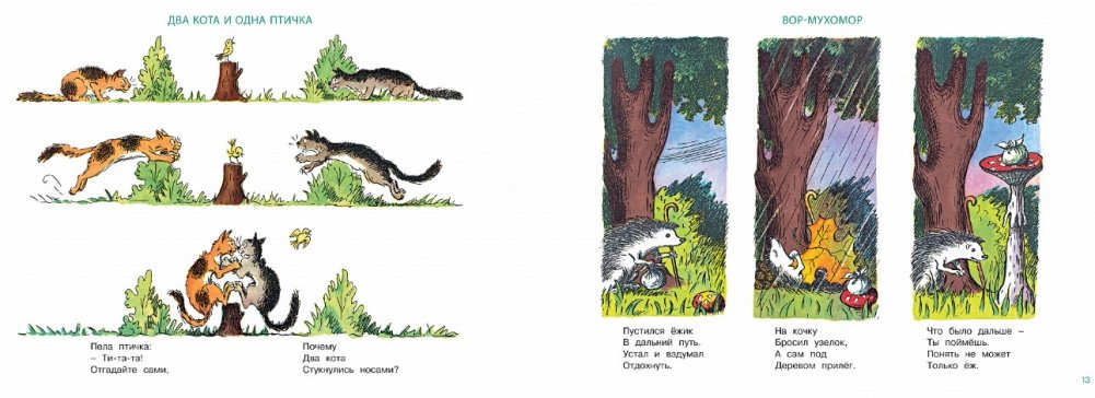 Николай Радлов с большой фантазией и юмором придумал эти смешные рассказы-картинки, героями которых стали животные – умные, находчивые, ловкие, хитрые… А весёлые тексты-подписи сочинил дружный коллектив писателей и поэтов – Даниил Хармс, Нина Гернет и Наталья Дилакторская.