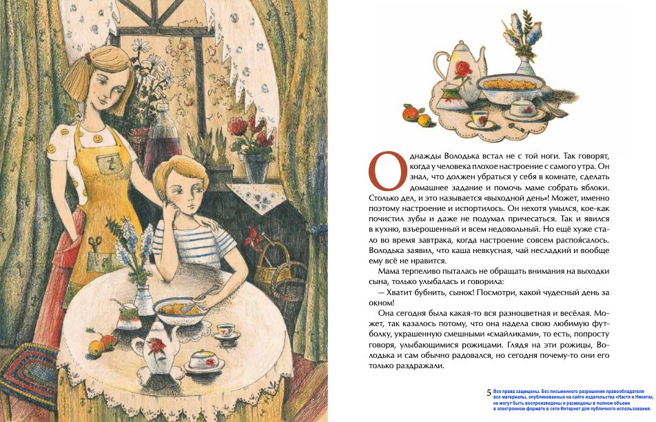 Однажды Володька встал не с той ноги. А когда мама попросила его собрать яблоки, настроение вообще испортилось. Да, он помнит, что обещал, только сейчас ему хочется поиграть с друзьями в футбол. Но почему всё в мире вдруг стало серым? Старушка в необычной шляпке подскажет мальчику, как вернуться домой, но найти ключ от запертой двери своего дома ему предстоит самому.