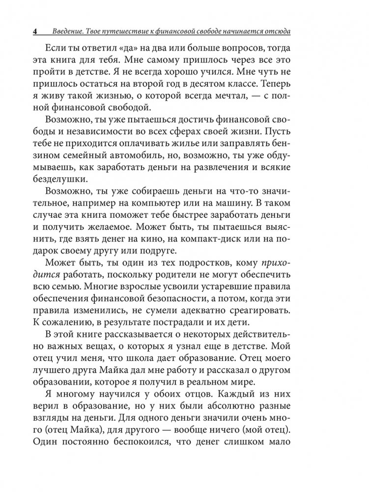 Ты — тинейджер и пытаешься скопить деньги на что-то ТАКО-О-Е? Но, к сожалению, тебе не хватает элементарных основ финансовой грамотности. Да, этому не учат в школе... Но не отчаивайся! Эта книга поможет тебе добиться своей цели — научиться делать деньги. Роберт Кийосаки, когда-то сам начинавший с нуля, дает множество деловых советов и показывает, как сделать правильный выбор — выбор, который делают действительно богатые люди. Главное — запомни: начинать финансовое образование никогда не рано!