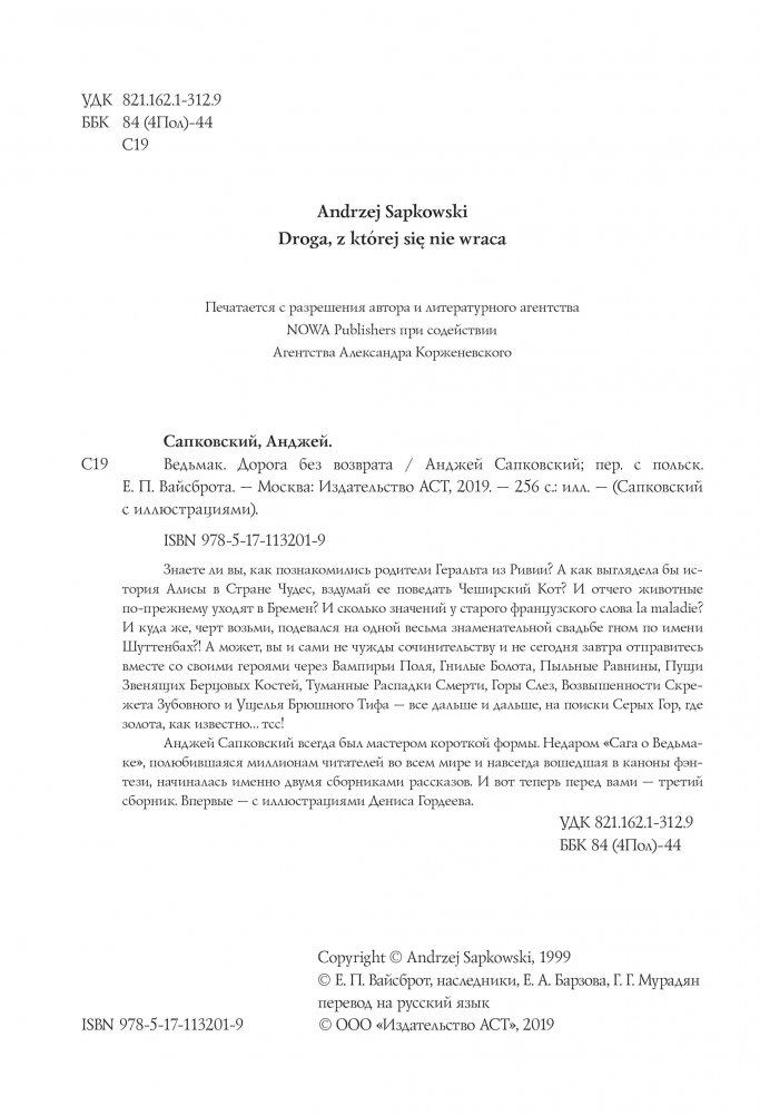 Знаете ли вы, как познакомились родители Геральта из Ривии? А как выглядела бы история Алисы в Стране Чудес, вздумай ее поведать Чеширский Кот? И отчего животные по-прежнему уходят в Бремен? И сколько значений у старого французского слова la maladie? И куда же, черт возьми, подевался на одной весьма знаменательной свадьбе гном по имени Шуттенбах?! А может, вы и сами не чужды сочинительству и не сегодня завтра отправитесь вместе со своими героями через Вампирьи Поля, Гнилые Болота, Пыльные Равнины, Пущи Звенящих Берцовых Костей, Туманные Распадки Смерти, Горы Слез, Возвышенности Скрежета Зубовного и Ущелья Брюшного Тифа — все дальше и дальше, на поиски Серых Гор, где золота, как известно… тсс! Анджей Сапковский всегда был мастером короткой формы. Недаром "Сага о Ведьмаке", полюбившаяся миллионам читателей во всем мире и навсегда вошедшая в каноны фэнтези, начиналась именно двумя сборниками рассказов. И вот теперь перед вами — третий сборник. Впервые — с иллюстрациями Дениса Гордеева.