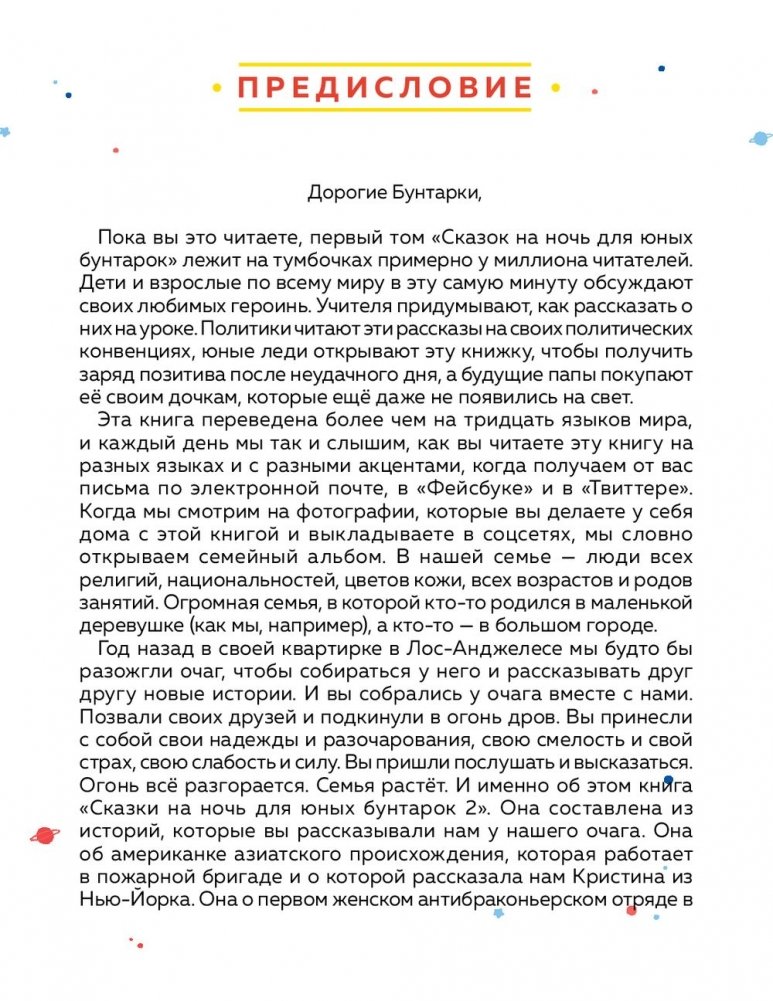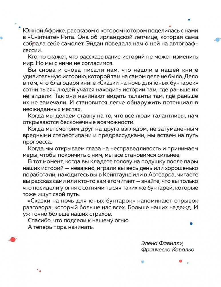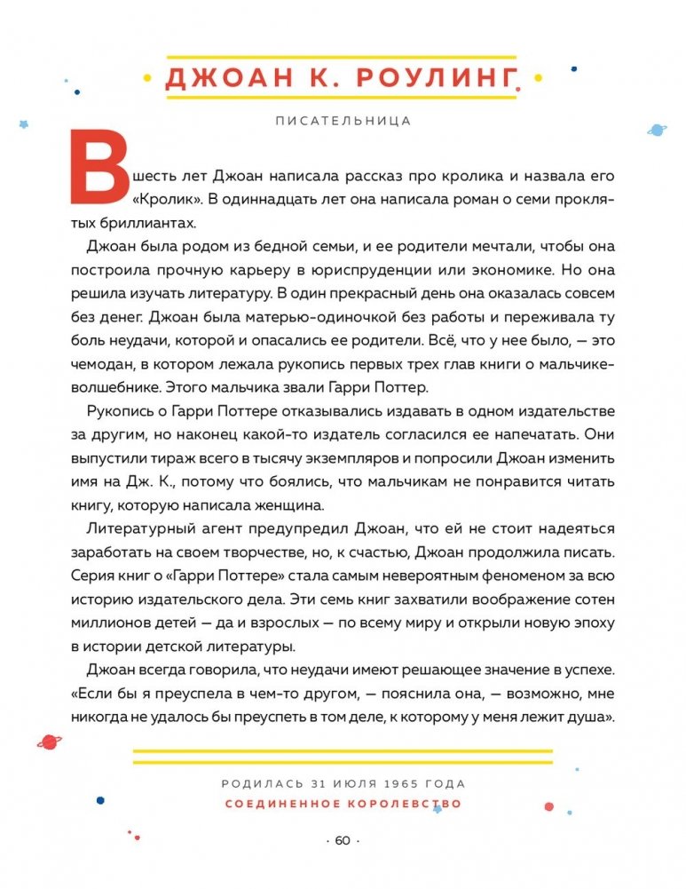 Что делать, если прекрасный принц не может помочь с химической лабораторией? К кому идти за помощью, если удача повернулась спиной? Как жить, если родители решили выдать замуж, а тебе хочется грабить корабли в море? Ответ прост – все уже есть в вас самих, и нужно держаться своего курса. Перед вами – огромный источник жизненных сил и вдохновения. Множество сказок, написанных на основе реальных историй о смелых и необыкновенных женщинах-новаторах (Агата Кристи, Бейонсе, Одри Хепберн, Джоан К. Роулинг, Айседора Дункан, Валентина Терешкова), сумевших выйти за рамки и справиться с невзгодами собственными силами, не оставят равнодушными юных бунтарок-мечтательниц и их мам!