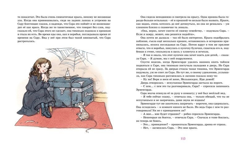В книге известной англо-американской писательницы Фрэнсис Бёрнетт (1849–1924) рассказана удивительная история семилетней Сары Кру, которая в одночасье из богатой наследницы превратилась в бедную служанку, но в душе всё равно осталась настоящей принцессой с добрым и отважным сердцем, умеющим любить и сострадать. И в награду за её светлую, чистую душу богатство вернулось к ней сторицей.
