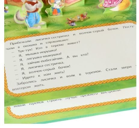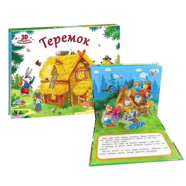 Красочная книжка с объемными Pop-up элементами на каждой странице. В книжке 4 разворота (8 страниц).